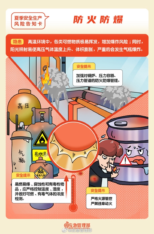 高溫天氣下安全生產(chǎn)工作要關注哪些風險隱患?如何防范?這組風險告知卡請查收↓↓↓