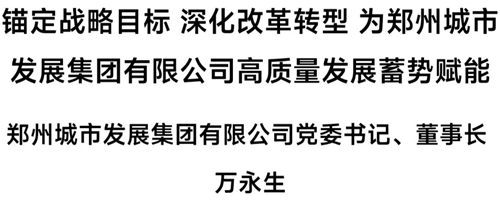 下面,為您推出鄭州城市發(fā)展集團(tuán)有限公司黨委書記、董事長萬永生署名文章《錨定戰(zhàn)略目標(biāo) 深化改革轉(zhuǎn)型 為鄭州城市發(fā)展集團(tuán)有限公司高質(zhì)量發(fā)展蓄勢(shì)賦能》——