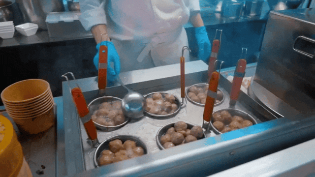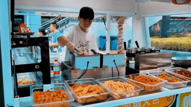 在夜市兩旁,章魚燒、特色酥肉、撈汁小海鮮、小龍蝦……十余家風(fēng)味小吃店一字排開,琳瑯滿目,吸引了不少消費者駐足品嘗。