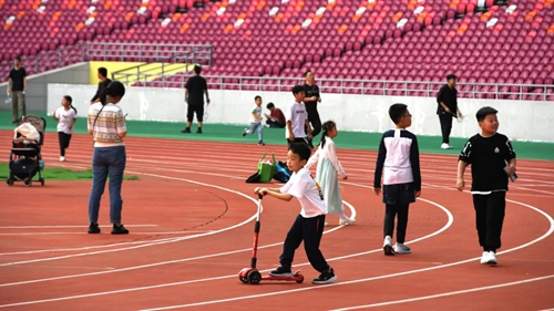 作為鄭州文化體育地標(biāo)性場(chǎng)館,鄭州奧體中心特別在小長(zhǎng)假期間,分時(shí)段低免開放體育場(chǎng)、綜合訓(xùn)練館羽毛球場(chǎng)地、室外網(wǎng)球場(chǎng)、室外籃球場(chǎng)、田徑訓(xùn)練場(chǎng),通過(guò)高品質(zhì)、多品類的運(yùn)動(dòng)場(chǎng)地開放,傳播科學(xué)的健身理念,吸引更多人加入全民健身熱潮中。秋高氣爽,很多家長(zhǎng)帶著孩子,來(lái)到奧體中心體育場(chǎng),踢球、慢跑、散步,在這座6萬(wàn)座恢宏場(chǎng)館中,感受休閑運(yùn)動(dòng)好時(shí)光。
