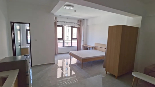 李博租住的公寓內(nèi),配備了智能門鎖、獨(dú)立衛(wèi)浴、床、衣柜、書桌、洗衣機(jī)、空調(diào)、冰箱、抽油煙機(jī)、晾衣架等,有暖氣無燃?xì)?。李博說,自己每天大部分時(shí)間都在學(xué)校,騎車到公寓單程約20分鐘,“公寓的環(huán)境和配套都挺好的,滿足自住完全沒問題。”