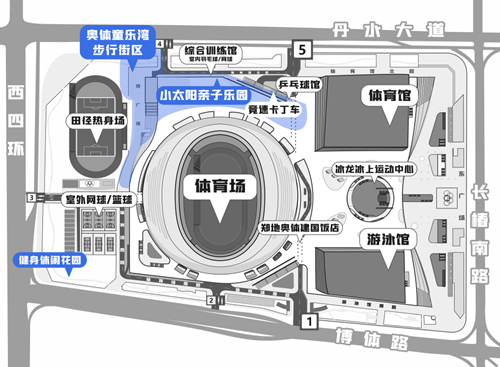 奧體童樂灣步行街區(qū)西鄰田徑訓練場,適合開展足球、慢跑、飛盤等親子運動,南側配備有“奧體便民共享便利店”和衛(wèi)生間,向東可直達體育場二層平臺的“小太陽”網(wǎng)紅打卡地,不僅視野開闊,能一覽各場館建筑風貌,還配備了攀爬架、沙坑、秋千等兒童玩樂項目。