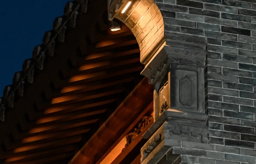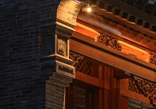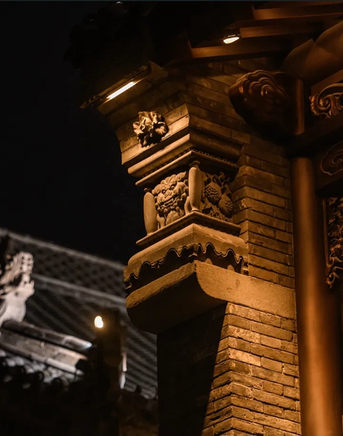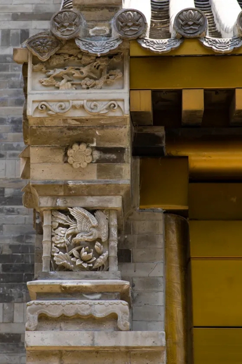 與之相對的17號樓主題為仙鶴,主題靈感來自于“仙鶴的故鄉(xiāng)”鶴壁。建筑上精美的墀頭也表達(dá)了此棟院子的主題,其上段位仙鶴,寓意松鶴延年,墀頭下端位仙鹿,寓意福祿綿長。而這處雕刻精美又涵義豐富的墀頭設(shè)計(jì)來源于河南鶴壁的古城摘星臺公園。