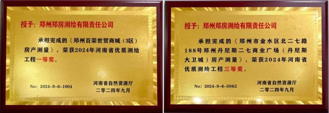 近日,河南省自然資源廳發(fā)布2024年“河南省優(yōu)質(zhì)測繪工程獎”評選結(jié)果,其中,鄭州鄭房測繪有限責(zé)任公司獲得“河南省優(yōu)質(zhì)測繪工程獎”一等獎1項、三等獎1項。