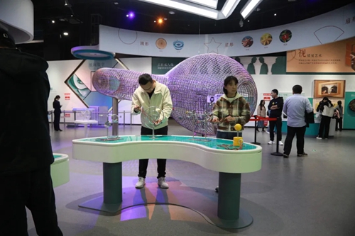 走進(jìn)“音樂(lè)中的科學(xué)”展廳,不難發(fā)現(xiàn),這里以音樂(lè)為主體,注重與自然、生活、社會(huì)、科學(xué)等領(lǐng)域的融合,讓觀眾從科學(xué)的視角探究音樂(lè)中的科學(xué)奧秘,用科學(xué)詮釋音樂(lè),用科學(xué)產(chǎn)生音樂(lè),打破藝術(shù)與科學(xué)的壁壘,在潛移默化中拓展青少年的科學(xué)視野、增強(qiáng)科學(xué)素養(yǎng),激發(fā)對(duì)科學(xué)的興趣和好奇心,感受藝術(shù)與科學(xué)碰撞。