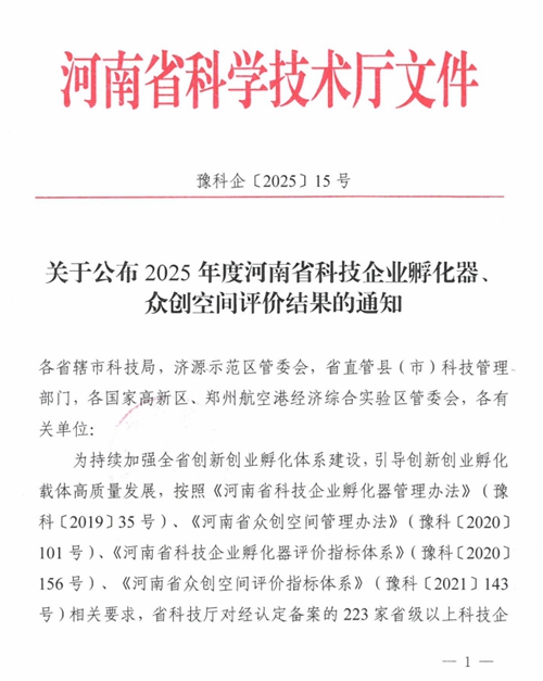 近日,河南省科學(xué)技術(shù)廳正式發(fā)布《關(guān)于公布2025年度河南省科技企業(yè)孵化器眾創(chuàng)空間評(píng)價(jià)結(jié)果的通知》(豫科企〔2025〕15號(hào)),鄭州城發(fā)集團(tuán)金岱智慧產(chǎn)業(yè)園憑借扎實(shí)的孵化服務(wù)能力、突出的創(chuàng)新培育成效,在全省223家省級(jí)以上科技企業(yè)孵化器的嚴(yán)格考評(píng)中脫穎而出,榮獲最高考核等級(jí)——“優(yōu)秀(A類)”!