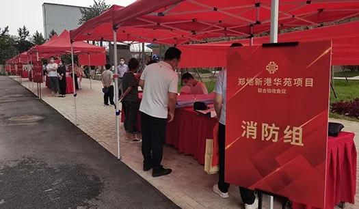 鄭地新港華苑項(xiàng)目于2021年8月26日下午,順利完成由鄭州市城建局牽頭組織,人防、消防、質(zhì)監(jiān)、規(guī)劃等部門共同參與的聯(lián)合驗(yàn)收,是疫情期間第一個(gè)通過聯(lián)合驗(yàn)收的建設(shè)項(xiàng)目。為嚴(yán)格落實(shí)鄭州市新冠肺炎疫情的防控要求,新港華苑項(xiàng)目部提前制定了周密的疫情防控方案,采取了妥善的疫情防控措施,有序組織進(jìn)入院區(qū)人員掃健康碼、檢查48小時(shí)核酸檢測結(jié)果、測量體溫、酒精消殺、分發(fā)防疫包等。經(jīng)過啟動儀式、書面匯報(bào)、現(xiàn)場巡查、聯(lián)動測試等環(huán)節(jié),鄭地新港華苑項(xiàng)目順利完成聯(lián)合驗(yàn)收工作。