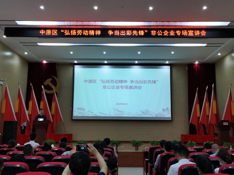 為充分發(fā)揮中原新區(qū)聯(lián)合黨委基層黨校在黨的理論教育上的主陣地作用和在黨性教育上的大熔爐作用,在黨校中弘揚習近平總書記給圓方集團職工的重要回信精神,真正使聯(lián)合黨委基層黨校成為黨員干部思想政治教育的紅色殿堂,6月5日和9日,中原區(qū)“弘揚勞動精神 爭當出彩先鋒”企業(yè)、班組專場及非公企業(yè)專場宣講會在中原新區(qū)聯(lián)合黨委基層黨校舉行,中原區(qū)委組織部組織科科長蔚光勛、西流湖公司副總經理昌磊出席活動,共有來自中原區(qū)各街道辦事處、各企業(yè)的150余名黨員職工聆聽了宣講。